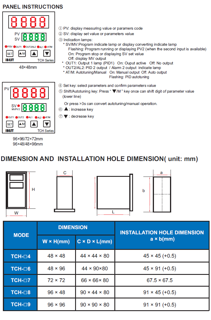 * Optional instrument size: 48W×48H、48W×96H、72W×72H、96W×48H、96W×96H.(mm).